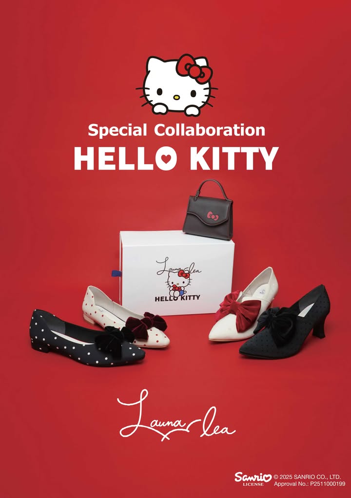 【SANRIO 限定品現貨】售完即止【HELLO KITTY × Launa lea 特別聯名】日本製蝴蝶結平底鞋 (460K)(黑色/Black Z/C)