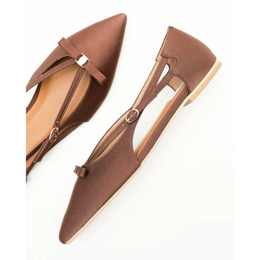 【新品預訂】日本製Emma Francis 緞面側平底鞋(棕色)( 07f-ST 105) Brown