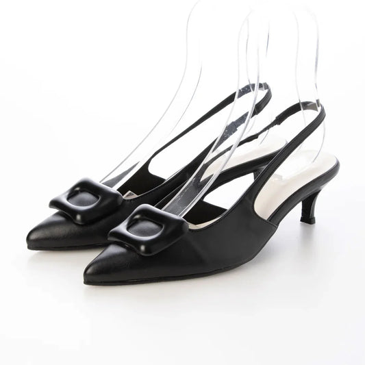 日本製 Launa Lea 5cm 尖頭方扣露跟高跟鞋 (591) (黑色 / Black)