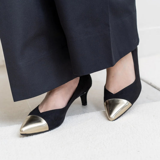 日本製 Launa Lea Rich 5cm Gold Line高跟鞋 (80009) (黑色 S / Black S)