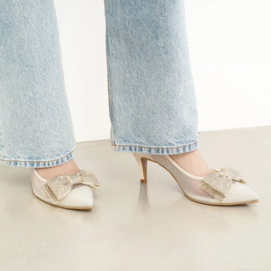 日本製 Launa Lea 7cm 水鑽緞帶薄紗高跟鞋 (594) (象牙色Z / Ivory Z)