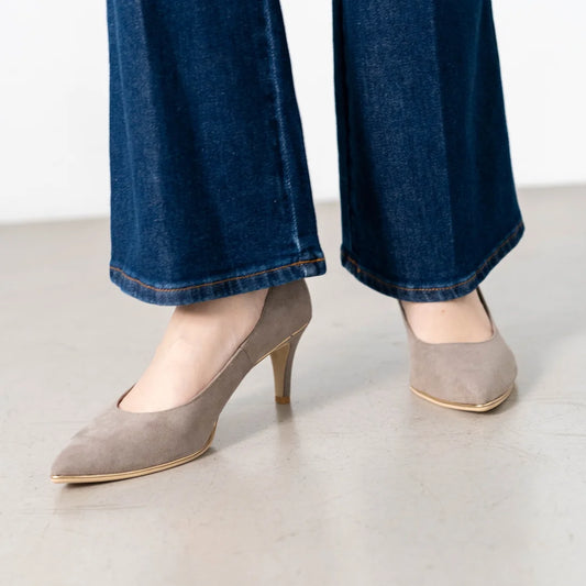 日本製 Launa Lea Rich 7cm Gold Line高跟鞋 (80001D) (米灰色 S / Greige S)