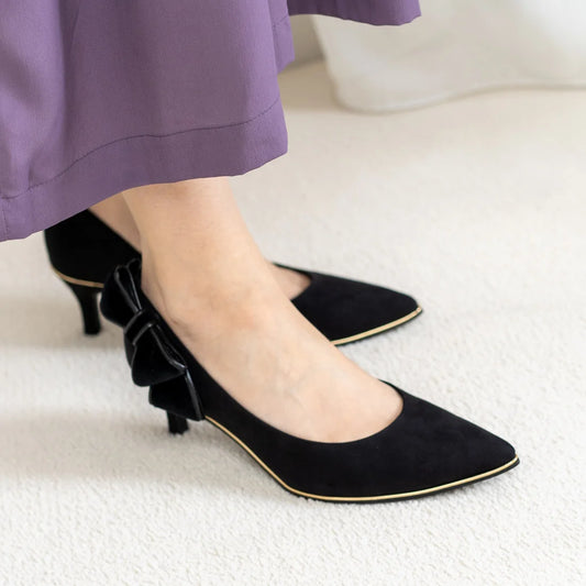 日本製 Launa Lea 7cm後背雙蝴蝶結尖頭高跟鞋(588) (黑色S / Black S)