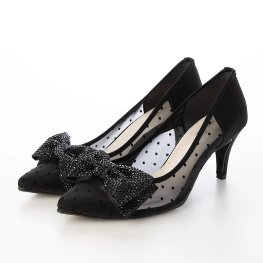 日本製 Launa Lea 7cm 水鑽緞帶薄紗高跟鞋 (594) (黑色Z / Black Z)