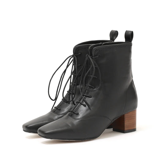 日本製Emma Francis 繫帶疊跟靴(黑色滑順)(9005-P 101)(black smooth)(ブラック スムース)