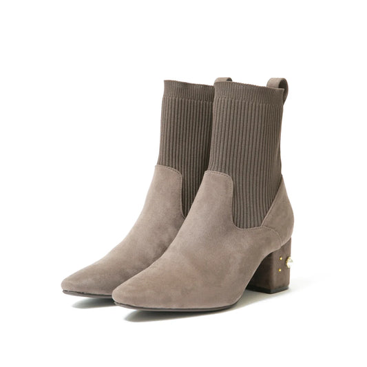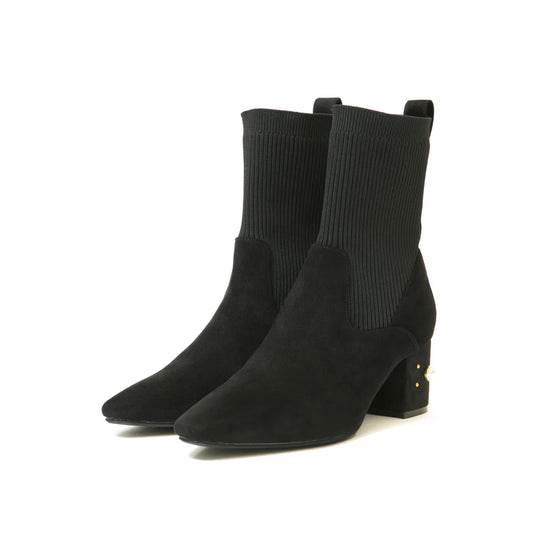 日本製Emma Francis 珍珠跟針織靴(黑色絨面革)(9006-S 101)(black suede)(ブラック スエード)