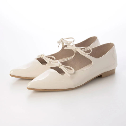 日本製 Launa Lea 雙緞帶瑪麗珍平底鞋 (589) (象牙色 E / Ivory E)