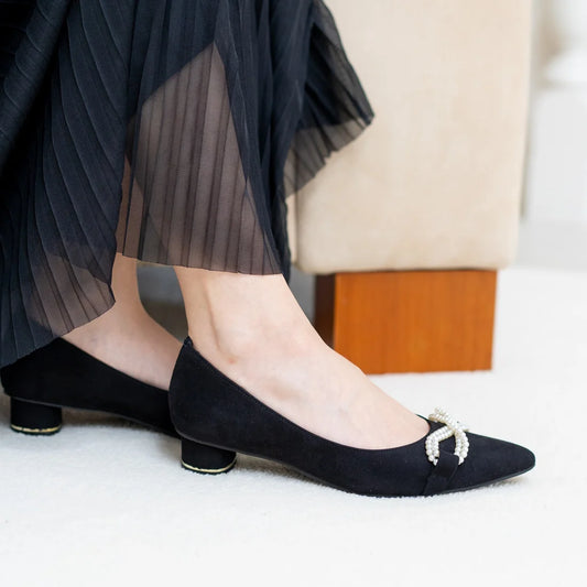 日本製 [限量] Launa lea 鑽石圖案平底高跟鞋 (0537) (Black S)