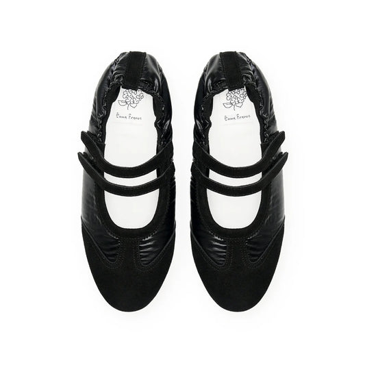 【新品預訂】日本製Emma Francis 彈性褶邊瑪麗珍芭蕾舞鞋(黑色天鵝絨皮革)(09k-NY 101)
