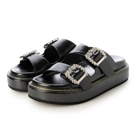 日本潮牌Lucida 黑色 Zygos 閃亮寶石扣環涼鞋 ( LD-4021 BLK )