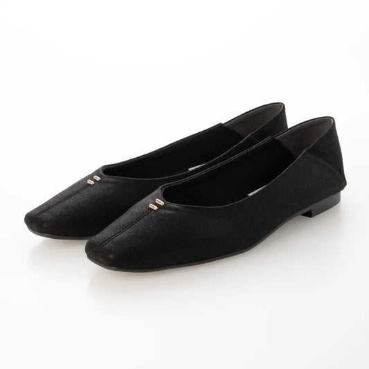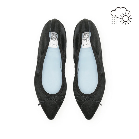 【新品預訂】日本製【珍珠色調防水】Emma Francis真皮 尖頭平底芭蕾舞鞋(01b-L H101)(Black Harako Leather)(ブラック ハラコレザー)
