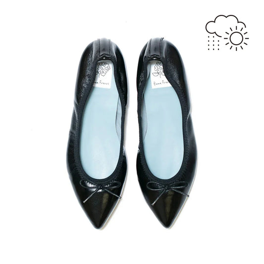 日本製【珍珠色調防水】Emma Francis 真皮 尖頭平底芭蕾舞鞋(01b-L M101)(Black Leather Mylar) (ブラック レザーマイラー)