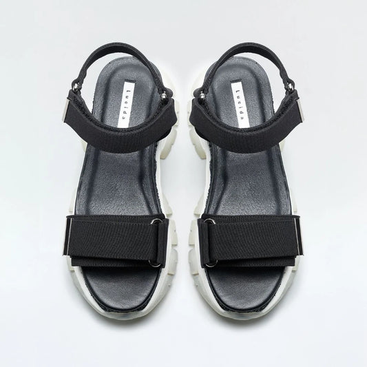 日本潮牌Lucida 黑色 Reticulum 霧面織帶閃粉厚底運動涼鞋 ( LD-64 BLK )