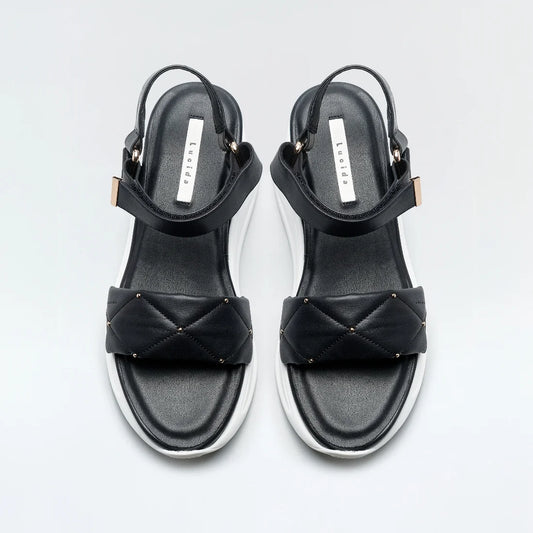 日本潮牌Lucida 黑色 Hydrus 成熟優雅絎縫設計厚底涼鞋 ( LD-4010 BLK )