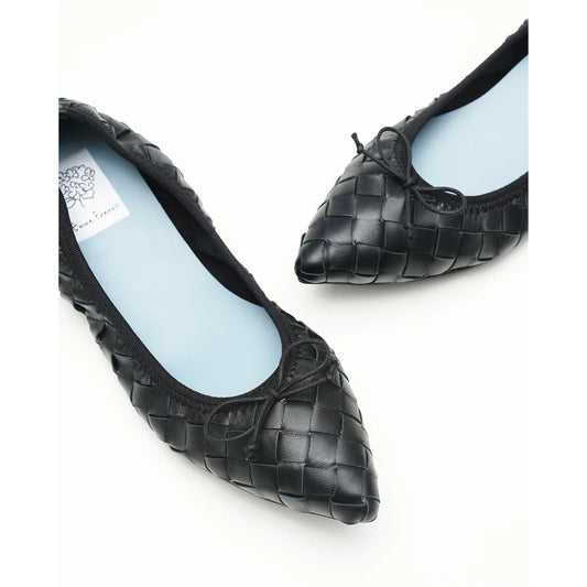 【新品預訂】日本製【珍珠色調防水】Emma Francis真皮 尖頭平底芭蕾舞鞋(01b-L P101)(Black Leather Intrecciato)(ブラック レザーイントレチャート)