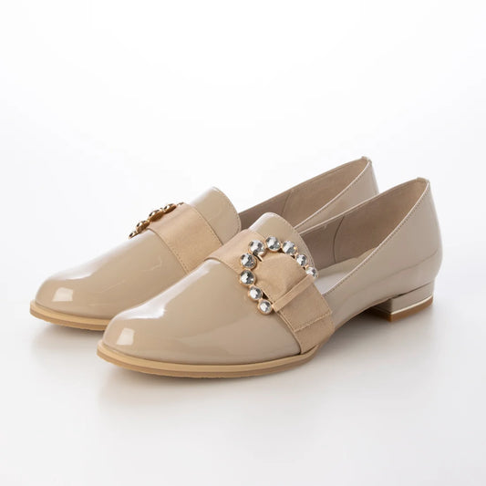 日本製 Launa Lea 串珠圓扣樂福鞋 (593) (米色 E / Beige E)