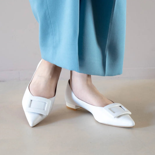 日本製 Launa Lea 輕紗立體方扣尖頭鞋 (0505) L Gray S