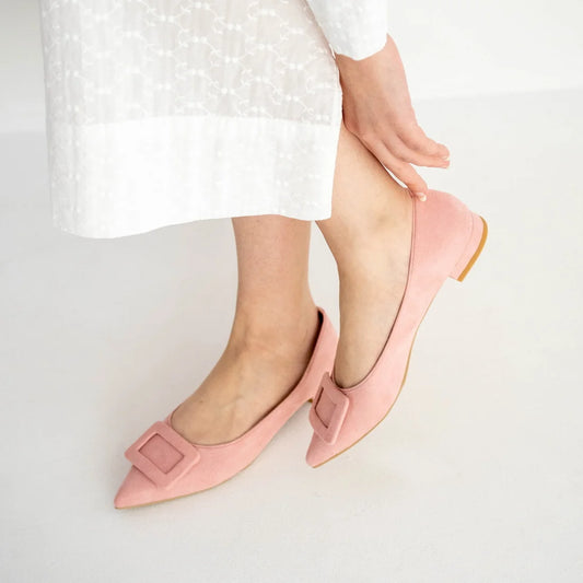 日本製 Launa Lea 輕紗立體方扣尖頭鞋 (0505) Pink S