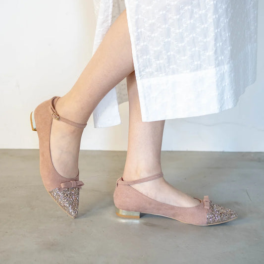 日本製 Launa lea 尖頭蝴蝶結低跟鞋 (0502) Pink Beige S/C