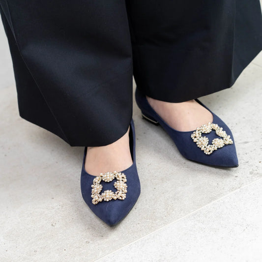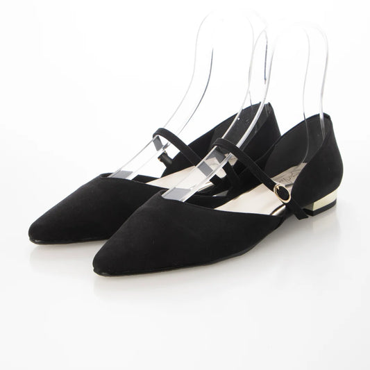 日本製 Launa Lea 輕紗立體方扣尖頭鞋 (0505) Black S