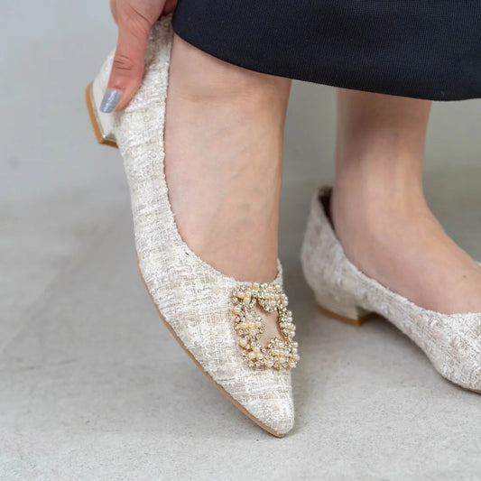 日本製 Launa lea 帶扣尖頭高跟鞋 (459) Ivory