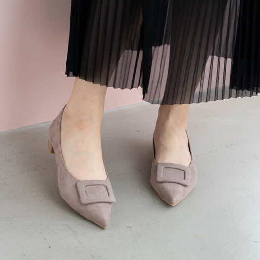 日本製 Launa lea 扣尖頭高跟鞋 (459A) (灰啡色 S / Greige S )