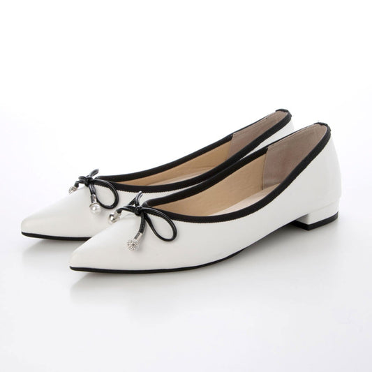 【新品預訂】日本製 Lauf Oletta 防水鑲邊流蘇設計的氣質平底鞋(LRH120 White) (白色)