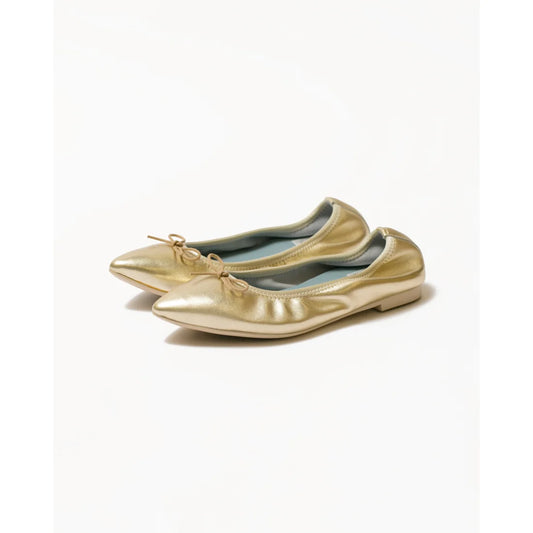 日本製【珍珠色調防水】Emma Francis尖頭平底芭蕾舞鞋 (01b-L M164) (Gold leather suede)(ゴールド レザースエード)