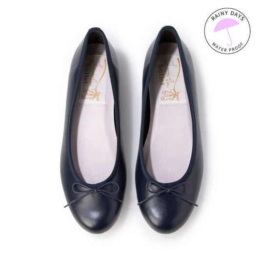 日本製 Launa lea 蝴蝶結尖頭啞面芭蕾晴雨鞋( RB4001A ) (深藍色/Navy)