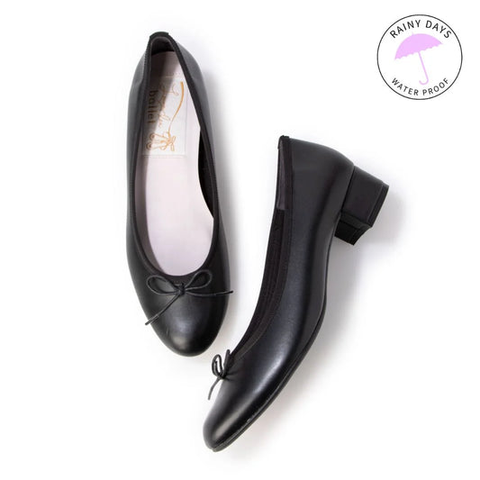 日本製 Launa lea 3.5cm踭蝴蝶結圓頭啞面芭蕾晴雨鞋 ( RB5001A ) (黑色/Black)