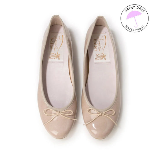 日本製 Launa lea 3cm踭蝴蝶結圓頭亮面芭蕾晴雨鞋( RB5401A ) (杏色/ Beige E)