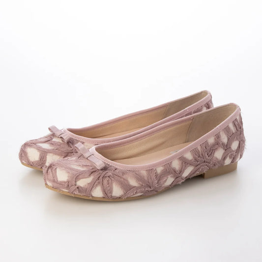 日本製 Launa Lea [限量] 花朵雪紡圓頭芭蕾舞鞋 (B1605A) (粉紅色 Z / Pink Z)