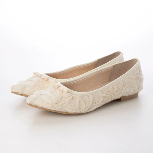日本製 Launa Lea [限量] 花朵雪紡尖頭芭蕾舞鞋 (B4605A) (象牙色 Z / Ivory Z)
