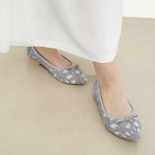 日本製 Launa Lea [限量] 花朵雪紡尖頭芭蕾舞鞋 (B4605A) (L 灰色 Z / L Grey Z)