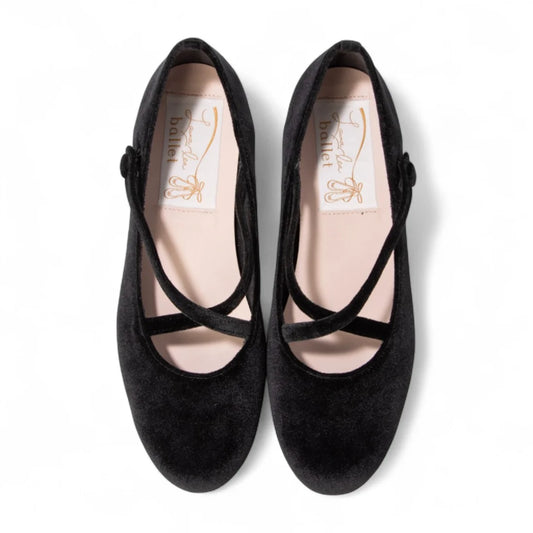 【新品預訂】日本製Launa lea 黑色絲絨材質交叉帶芭蕾鞋 (B1614A) (Black Z)