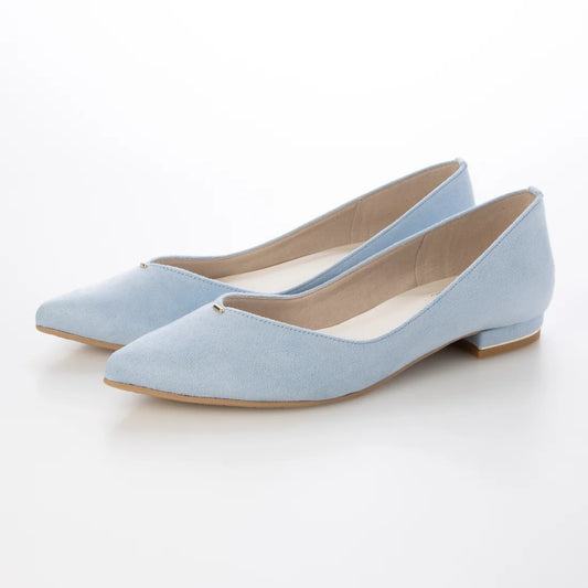日本製Launa Lea 金線V口剪裁平底鞋・淺藍(2cm金屬跟)(492 / L blue )