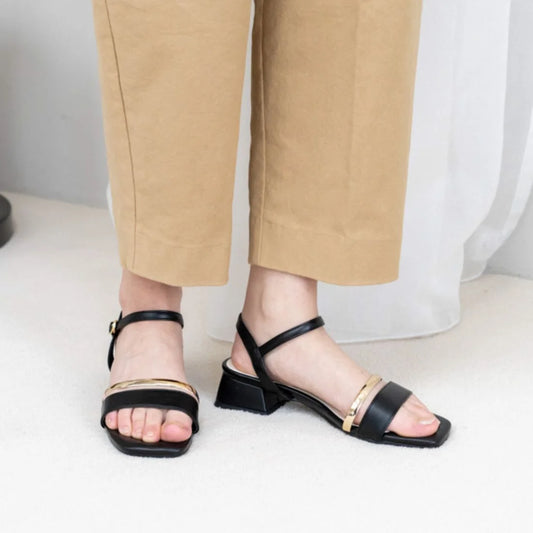 日本製 Launa lea 細方頭綁帶涼鞋 (521) Black