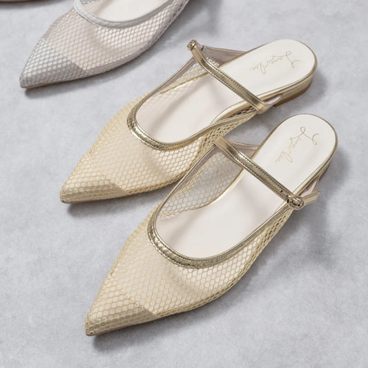日本製 Launa lea 網面後開式平底涼鞋 (522) Gold Z