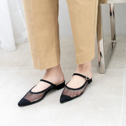 日本製 Launa lea 網面後開式平底涼鞋 (522) Black Z