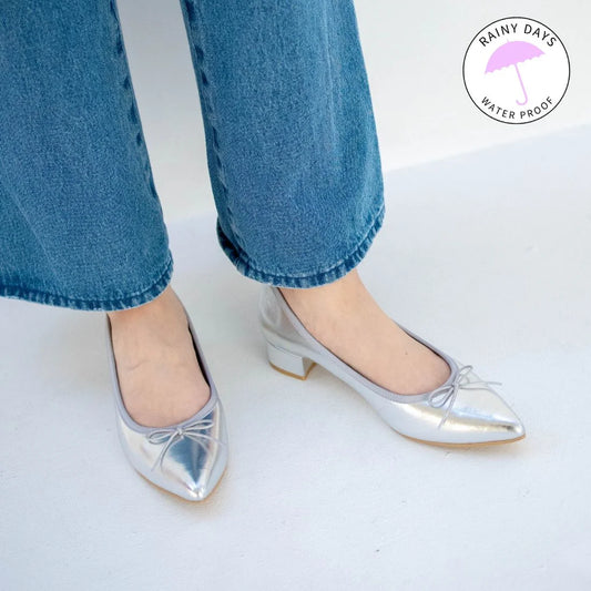 日本製 Launa lea 尖頭3.5cm跟晴雨芭蕾舞鞋 (RB9001A) Silver