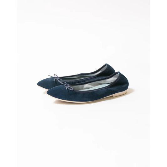 日本製【珍珠色調防水】Emma Francis尖頭平底芭蕾舞鞋(01b-L S117)(Navy leather suede)(ネイビー レザースエード)