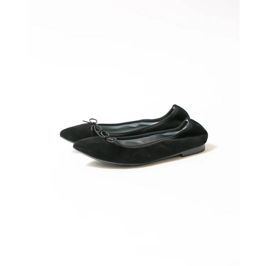 日本製【珍珠色調防水】Emma Francis尖頭平底芭蕾舞鞋(01b-L S101)(Black leather suede)(ブラック レザースエード)