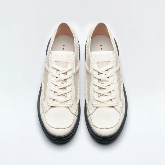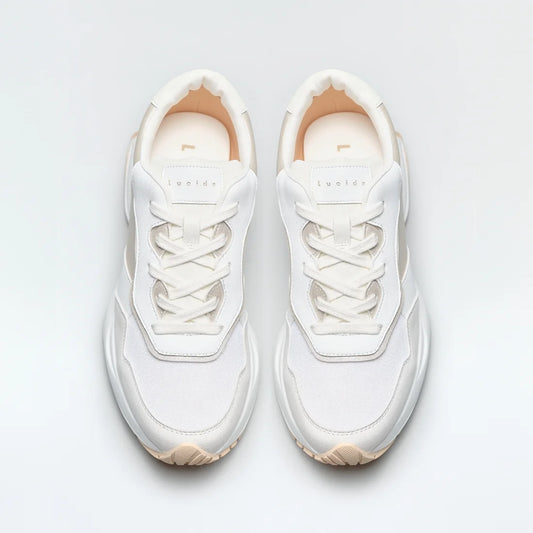 日本潮牌Lucida 白色Alnair厚底簡約拼接布料運動鞋 ( 3189 WHT )