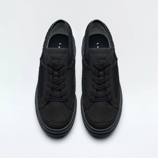 日本潮牌Lucida 黑色Comet厚底針織毛毛料拼色運動鞋 ( 3939 BLK )