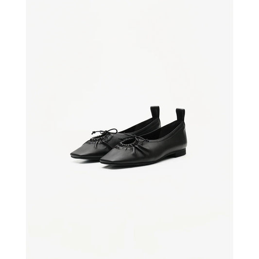 日本製 Emma Francis 褶皺平底高跟鞋 (黑色光面) 03u-P 101 BLK