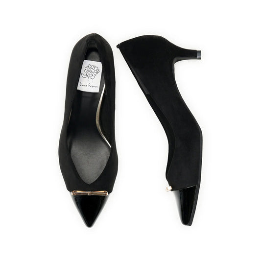 【新品】日本製Emma Francis 金色蝴蝶結 5cm 高跟鞋(黑色 絨面革)(5001b-S 101) BLK