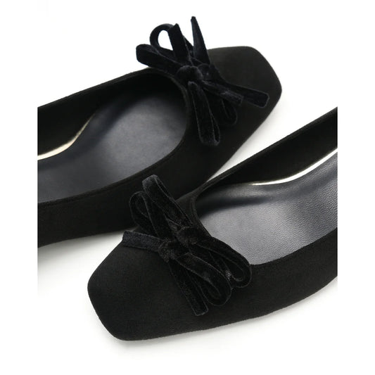 【新品】日本製Emma Francis 蝴蝶結3cm方頭高踭鞋(黑色絨面革)(3004a-S 101) BLK