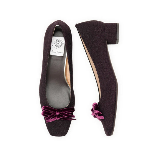【新品】日本製Emma Francis 蝴蝶結3cm方頭高踭鞋(葡萄酒 絨面革)(3004a-S 138) Wine