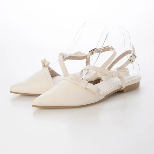 日本製 Launa Lea 雙蝴蝶結露跟平底高跟鞋 (596) (象牙色 / Ivory)