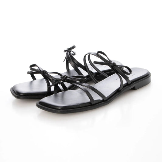 日本製 Launa Lea 雙蝴蝶結平底涼鞋 (604) (黑色 / Black)